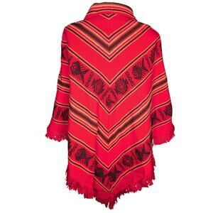 VTG Woven Poncho Cape Fringe Wrap Boho Andean Southwestern Wool Blend Cabincore