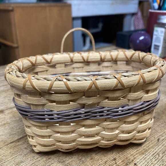 VTG Woven Wall Basket Artisan Handmade Cottagecore Farmhouse Decor Small Signed