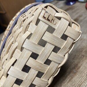 Vintage boho Woven Basket Artisan Cottagecore Farmhouse Decor Natural color & Stripe in faded blue