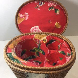 Vintage Handmade Chinese Portable Tea Woven Wicker Picnic Basket