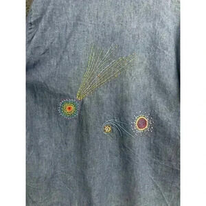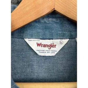 VTG Wrangler Blue Denim Shirt LARGE Long Sleeve Embroidered Women's Chambray