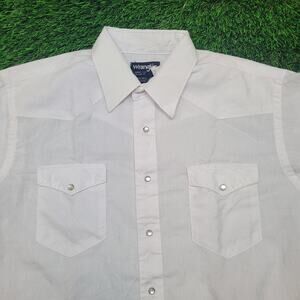 VTG Wrangler Cowboy Cut Western Shirt Mens XL 17-35 Pearl Snap X-Long Tails Western Yoke Sawtooth Pockets Single Needle Tailoring Rodeo Farm Ranch Farmer Rockabilly Southwestern Country
