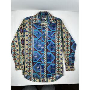 VTG Wrangler Cowboy Rodeo Western Aztec Button Down Shirt Sz Large Made in USA