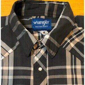 VTG Wrangler Men Black Brown Plaid Shirt Pearl Snap XL Cowboy Western Rodeo EUC