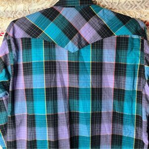 VTG Wrangler Multicolor Pearl Snap Made In USA Western Shirt Size 17 x 36