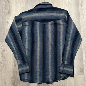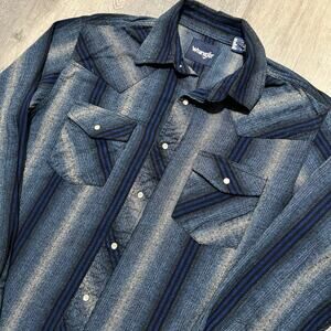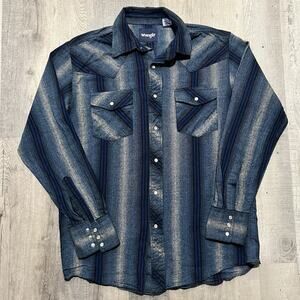 VTG Wrangler Pearl Snap Blue Striped Soft Western Long Sleeve Mens Shirt M