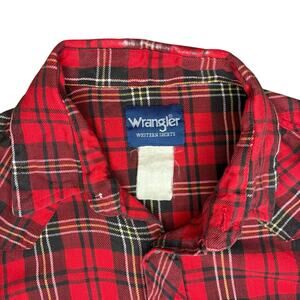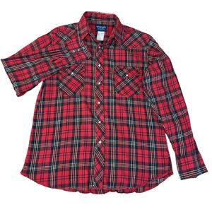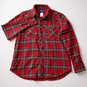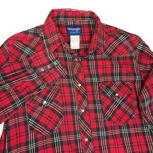 VTG Wrangler Pearl Snap Flannel Mens Lrg Lightweight Brush Popper Western Red