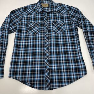 VTG Wrangler Retro Men’s Pearl Snap Western Rodeo Shirt Plaid Blue Check XL