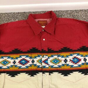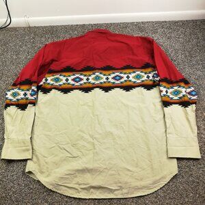 VTG Wrangler Rustler Shirt Western Pearl Snap Aztec Brushpopper Colorblock Sz XL