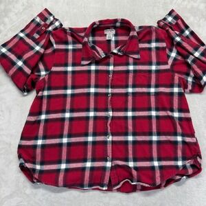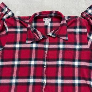 VTG Wrangler Shirt Women 2XL Red Plaid Rancher Shirts Button Up Long Sleeve
