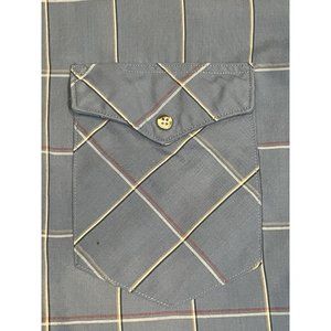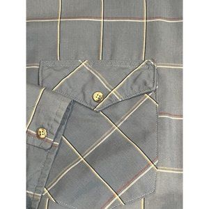 This vintage Wrangler button-up shirt is a classic piece of American fashion history. With its plaid pattern, pearl snap closure, and spread collar, this shirt exudes Western charm. The shirt's easy care, lightweight fabric and long tails make it perfect for any occasion, from casual wear to workwear to travel.