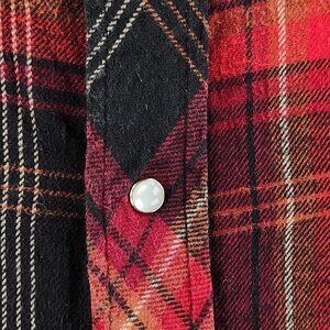 VTG Wrangler Snap Western Shirt Flannel Red Plaid Large Cotton Soft Point Collar