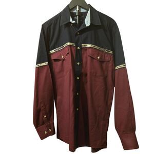 The VTG Wrangler Western Aztec Stripe Shirt is a vintage 90's rockabilly piece perfect for rodeo or casual wear. Made from 100% cotton, this colorblock shirt features a red and white Aztec stripe design, long sleeves, and a button-up style. With a Western theme, this shirt is ideal for the winter and fall seasons, and is a regular size M for men who appreciate retro fashion with a touch of American heritage.