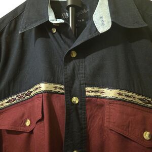 VTG Wrangler Western Aztec Stripe Shirt M 90's Color Block Rockabilly Rodeo