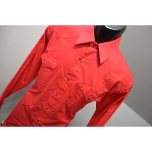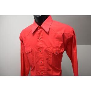 VTG Wrangler Western Pearl Snaps Red Cowboy Made in USA Shirt Mens 16.5-35 Large
