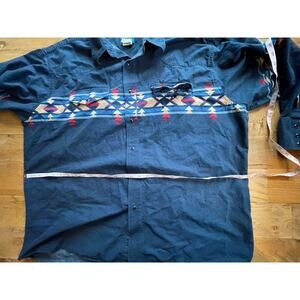 VTG Wrangler Western Shirt Men 2XL Blue Aztec Pearl Snap Rodeo Cowboy Southwest
