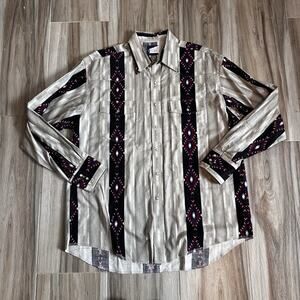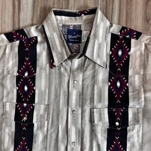 VTG Wrangler Western Shirts Red White Blue Aztec Stripe Pearl Snap XL cowboy