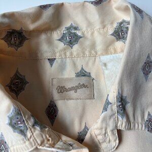 VTG Wrangler Womens Short Sleeve Shirt Yellow Southwestern Print Button Down