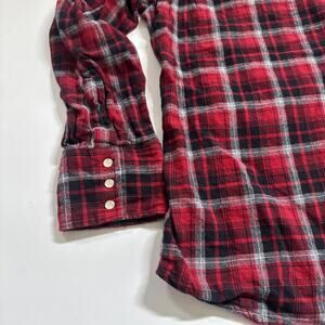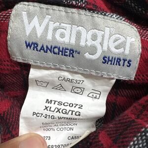VTG Wrangler Wrancher Cowboy Shirt Men XL Red Plaid Pearl Snap Flannel Western