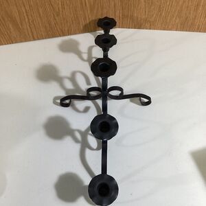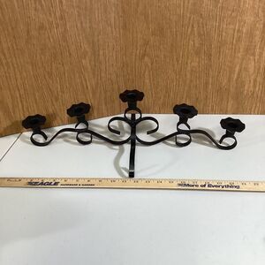 VTG Wrought Black Iron Rustic 5 Arm Candle Stand Candleabra Holder Table Decor
