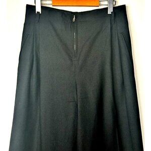 Hombre Women Black Wool Zip Up Pockets Pleated Wide Leg Dress Pants Size L