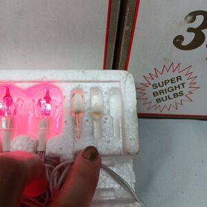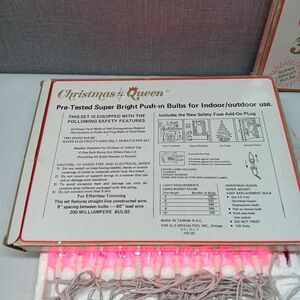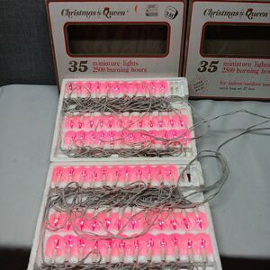 Up for sale are 2 vintage 35-light set with petal reflectors Christmas light strings -so that means a total of 70 bulbs/reflector lights. This indoor/outdoor set features ULTRA RARE pink bulbs with beautiful petal reflectors that scatter the light beautifully. You usually find multicolor, clear, or even blue, but the pink ones seem to be the rarest color available. Each box indicates they cover 27 feet of overall length, so that would be 54 feet total. The style of the packaging and lights suggests an older, classic Christmas aesthetic from I believe the 70s into the 80s. Some people even called these tulip reflectors. The boxes have typical wear for their age. One box has some green wax on the one side. The one box is missing the 2 spare bulbs that originally came with it. One bulb is burned out on the one string. But as you can see from the photos, these strings work fine and look very nice. So, brighten your home or yard with this iconic set!