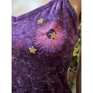 VTG Xhilaration Womens Purple Velvet V Neck Tank Top Small Y2K Fairy Embroidered
