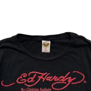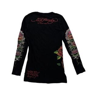 • VTG Y2K 00's Ed Hardy Graphic Rhinestone Sleeve Hit Black Long Sleeve T-Shirt