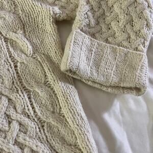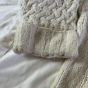 VTG Y2K 2000s Cream Wool Blend Cable Knit Turtleneck Sweater Sz M Fisherman
