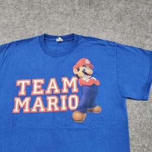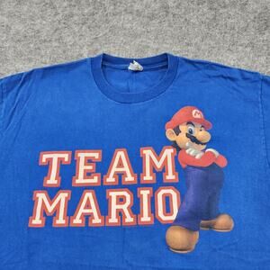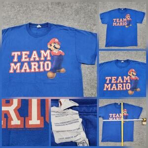 Selling Vintage VTG Y2K 2000s Team Mario Mens L Large Nintendo Gaming Video Game Graphic T Shirt. HAS A SMALL HOLE IN PIT (See Photos). You can see the condition from the photos. You can get further information from looking at what is shown in the photos. Pricing low to sell fast. I offer combined shipping on multiple purchases. All purchases should arrive within 2 to 9 days. International buyers should expect longer shipping time. If there are any issues please do the right thing and message me before leaving feedback.