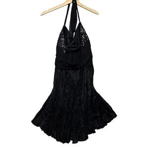 VTG Y2K 90s 00s BCBG Sequins Bow Ruffle Fairy Halter Top Mini Dress Black 2