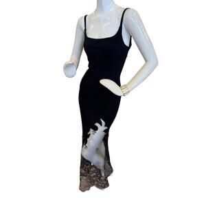 VTG Y2K 90s CACHE BLK Whimsygoth Maxi Dress Sheer Mesh Embroidered Floral Formal