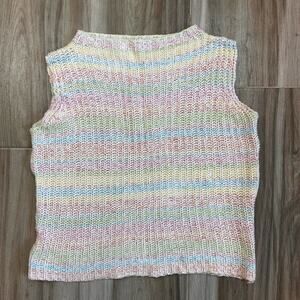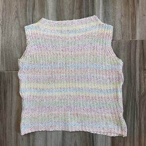 VTG Y2K 90s Crochet Tank Top Multi-color Boho Closed Knit Shirt Hippie festival