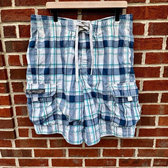 VTG Y2K Abercrombie & Fitch Cargo Swim Shorts Mens XL Blue Green Gray Plaid
