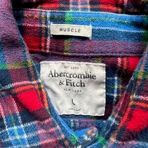VTG Y2K Abercrombie and Fitch Muscle Flannel Shirt Mens L Button Up Blue Plaid