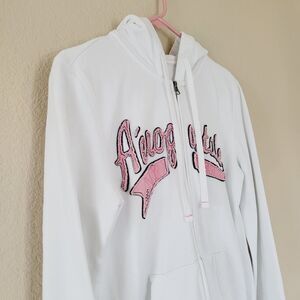 VTG Y2K Aeropostale White Full Zip Hoodie Women Large Spell Out Preppy Surf Flaw