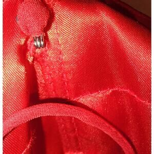 This stunning Alyce Y2K 100% Silk Red prom dress has swirl beading and Rhinestone. Build in padded bust, can be worn strapless, lined, Zip Back, has Hook and eye closure at Top but string is broken easy fix but not needed for wear. Due to this gown being vintage and so heavily beaded there are some small areas with light bead loss as shown and light snags to train area as shown. Please expect this to be in pre-owned vintage condition as there will be no returns for anything related to that, Sz 2, laying flat measure PTP apx 13.75", waist apx 11.5". Vintage sizing so runs more like a 0, XS.