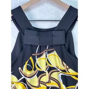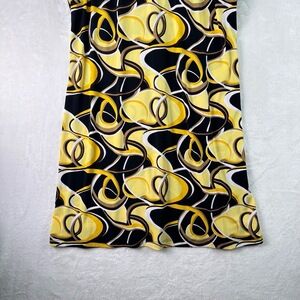 VTG Y2K Alyn Paige Abstract Yellow Black Geometric Midi Dress L Mod Retro