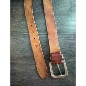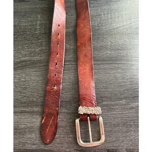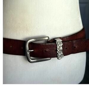 VTG Y2K American Eagle Brown Distressed Leather Belt Silver Tone Floral Buckle