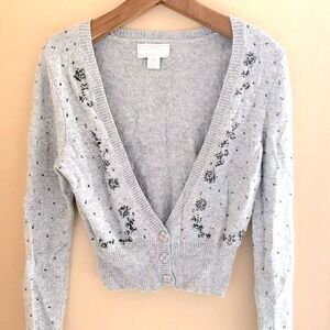 VTG Y2K American Eagle Gray Cropped Angora Blend Bead Stretch Cardigan Sweater M