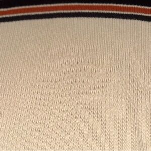 Color: Cream / Off-White base with bold Orange & dark navy horizontal stripes