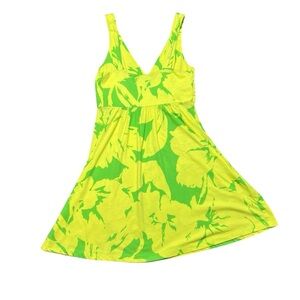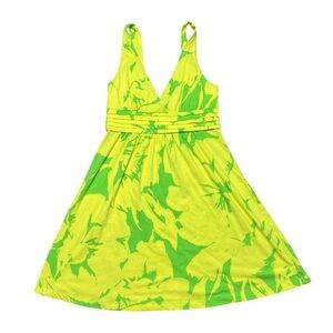 VTG Y2K American Eagle Tropical Floral Yellow And Green Summer Dress Size Medium