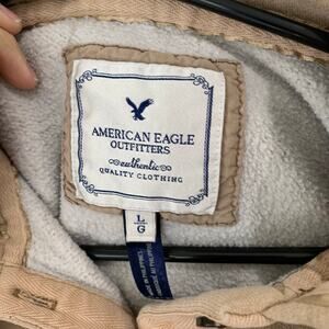 VTG Y2K American Eagle Womens Large Graphic Hoodie Pullover Tan Raw Edges Henley