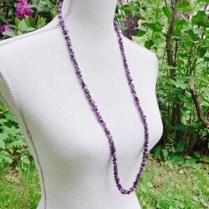 VTG Y2K Amethyst Chip Necklace 36" Natural Purple Gemstone Boho Strand Jewelry