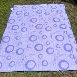 Vintage Y2K The Little Mermaid Ariel Reversible Twin Size Quilted Comforter. A rare and hard-to-find pattern that was a special edition from the Disney Princess line. Featuring Ariel on one side with a Blue background and flowers and pearl ropes. The back side is Purple and features a circle pattern and spellout “Little Princess”.