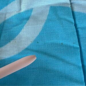 This comforter was used as a floor model only. It has some minor marks on it from years of storage. These have not been treated and may come out. The colors are vibrant and bright.