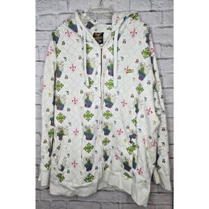VTG Y2K Avirex Zip Up Hoodie All Over Print rare white XXL. Zipper pull missing but still zips normally.