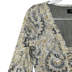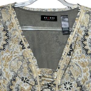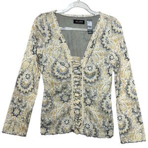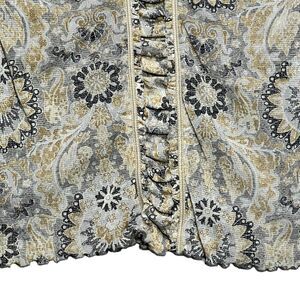 VTG Y2K Axcess Mesh Nylon Ruffle Edge V Neck Long Sleeve Boho Mandala Top Rouged