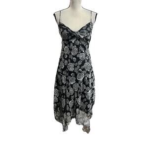 Vintage Y2K B Darlin black and grey floral rose pattern ruffle hem tie front fairy midi dress - Size 7/8, best fits a small/medium. See measurements below!