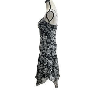 VTG Y2K B Darlin Black & Grey Floral Rose Pattern Ruffle Fairy Midi Dress 7/8